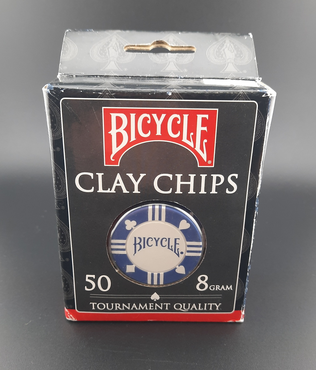 Фишки для игры в покер Bicycle - это профессиональные покерные фишки, созданные для турниров. Они отличаются высоким качеством материалов, приятным весом (около 8 граммов каждая) и устойчивостью к износу. Фишки имеют фирменную символику Bicycle с четкой гравировкой и насыщенными цветами, обеспечивая удобство их использования. В набор входит 50 фишек (25 синих, 15 красных и 10 черных фишек), что делает их идеальными для домашних игр или небольших турниров. Стоит отметить, что в отличии от других наборов, в этом нет фишки Дилера.