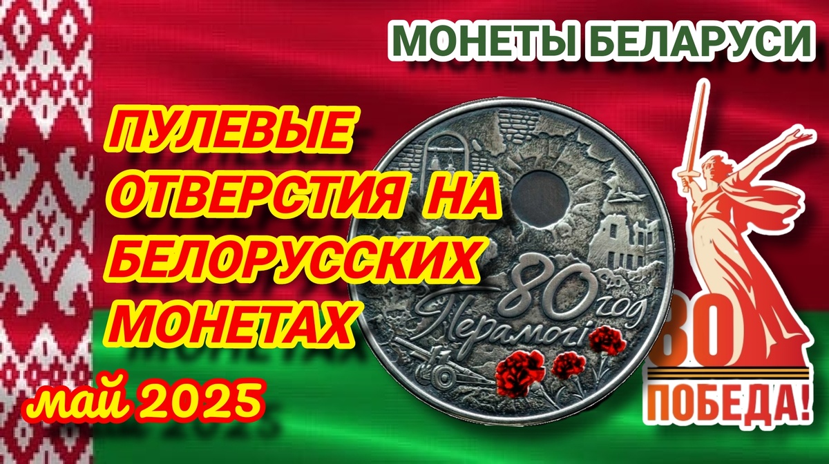 Пулевое отверстие на монете / Монета 80 лет Победы / Памятные монеты Беларуси