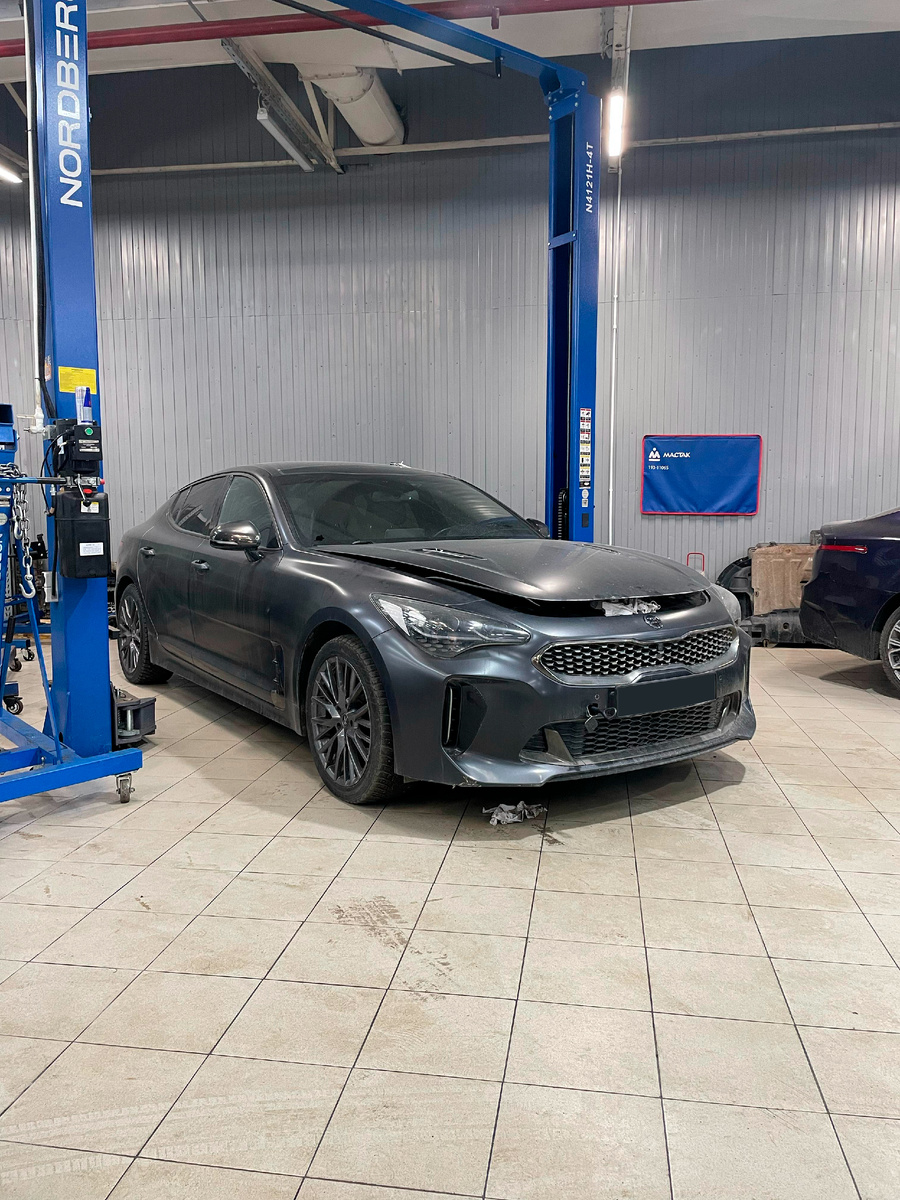 В наш сервис обратился владелец Kia Stinger 2019 года выпуска, с двухлитровым двигателем G4KL, пробег 92 тысячи километров. Во время эксплуатации автомобиля было пропущено ТО и нарушен интервал замены масла. Таким образом, машина проехала 30 тысяч километров в городском режиме на одном масле. Вспомнив об этом, клиент решил произвести замену вместе с промывкой двигателя. Спустя несколько промывок, он залил новое масло. Выехав из сервиса, обнаружил посторонний стук в двигателе, после чего автомобиль заглушили и переместили в наш сервис. Будем смотреть что произошло с мотором.