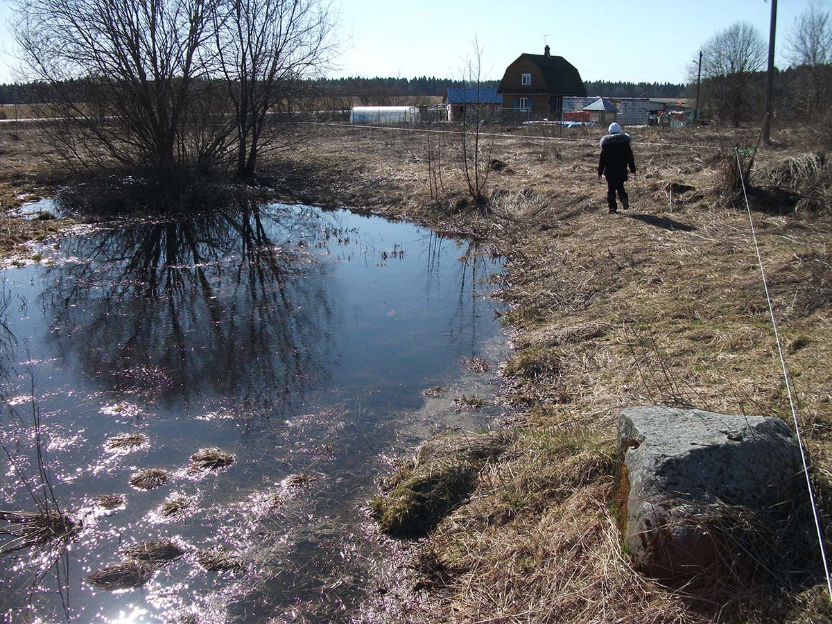 Снег полностью растаял, лед на пруду тоже, вообще наступило относительно теплое время, пора разворачивать деятельность по благоустройству наших угодий. Первым делом "озаборили" участок шпагатом. Кстати, тоже не надежный забор. Материал, из которого сделан этот шпагат под воздействием атмосферных осадков и солнечного света через год начинает разрушаться.