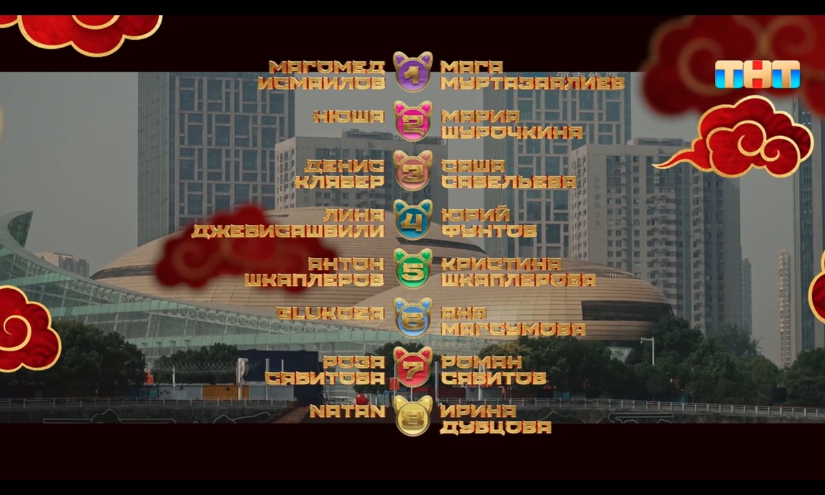 И первыми на финиш и коврик к ведущим прибегают Магомеды фиолетовые, а один из них с подарком для Оли, розой, не Сябитовой, а цветком из этого же парка, воруем ради симпатии))) что ж снова хотят закрутить флирт с Бузовой и на этом опять ехать, опасная дорожка, по ней уже один ходил и получил от ворот поворот)) Вторыми становятся Денис Клявер и Саша Савельева. Замыкают тройку зеленые. Синие четвертые, пятые желтые, голубые шестые.