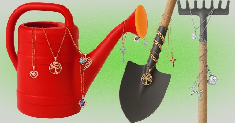 Если вашим садовым принадлежностям не хватает стиля, а денег у вас предостаточно, то можно повесить на них драгоценные украшения. Особенно если инвентарь большую часть времени пылится в гараже или дачном сарае. Так предлагает сделать бренд «585*Золотой»: к примеру, обвесить ювелирными изделиями лопату, грабли и даже садовую лейку. Конечно, в реальности эти цепочки, браслеты, кулоны и подвески предназначены для людей. Просто таким образом эксплуатируется ситуативный маркетинг в преддверии майских праздников, когда случается массовый исход москвичей на дачи. «Дачная» коллекция украшений включает в себя золотые и серебряные подвески с драгоценными и полудрагоценными камнями: бриллиантами, фианитами, топазами. Тут каждый выбирает сам, надевать их на себя либо на лейку — можно и так и так. Фото: 585zolotoy.ru