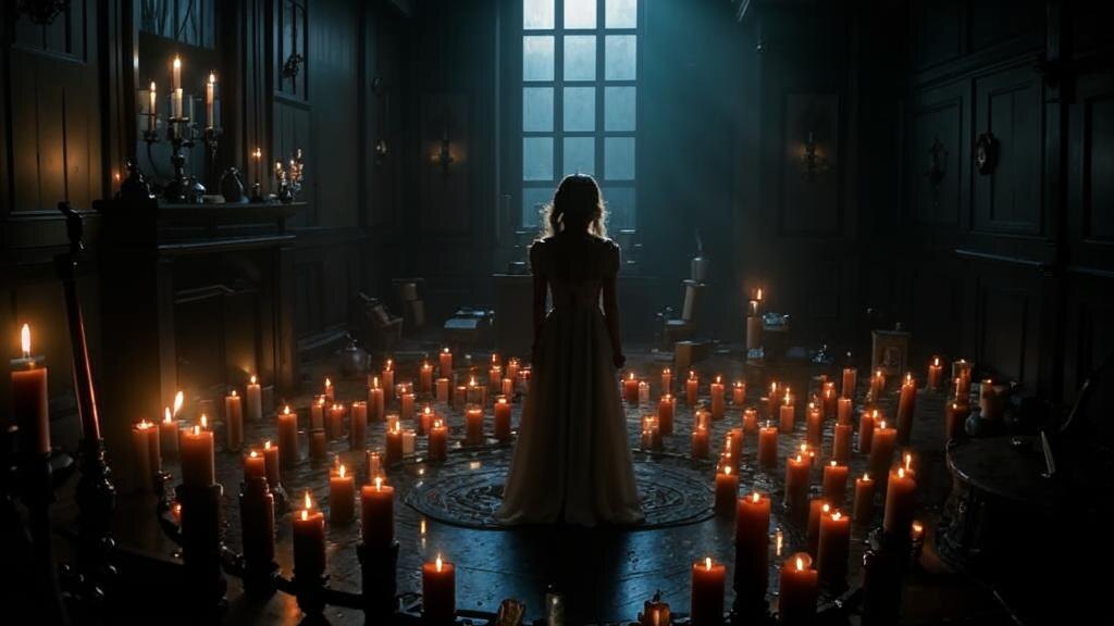 Вдруг один из огней потух. Страх охватил Элизабету; они должны были закончить ритуал. Она стала читать громче, её голос заполнил комнату, и тени начали свиваться вокруг них, как грозные облака. Внезапно девушка появилась снова, прямо перед ними. На этот раз её выражение лица было спокойным, но в глазах читалась безнадежность.