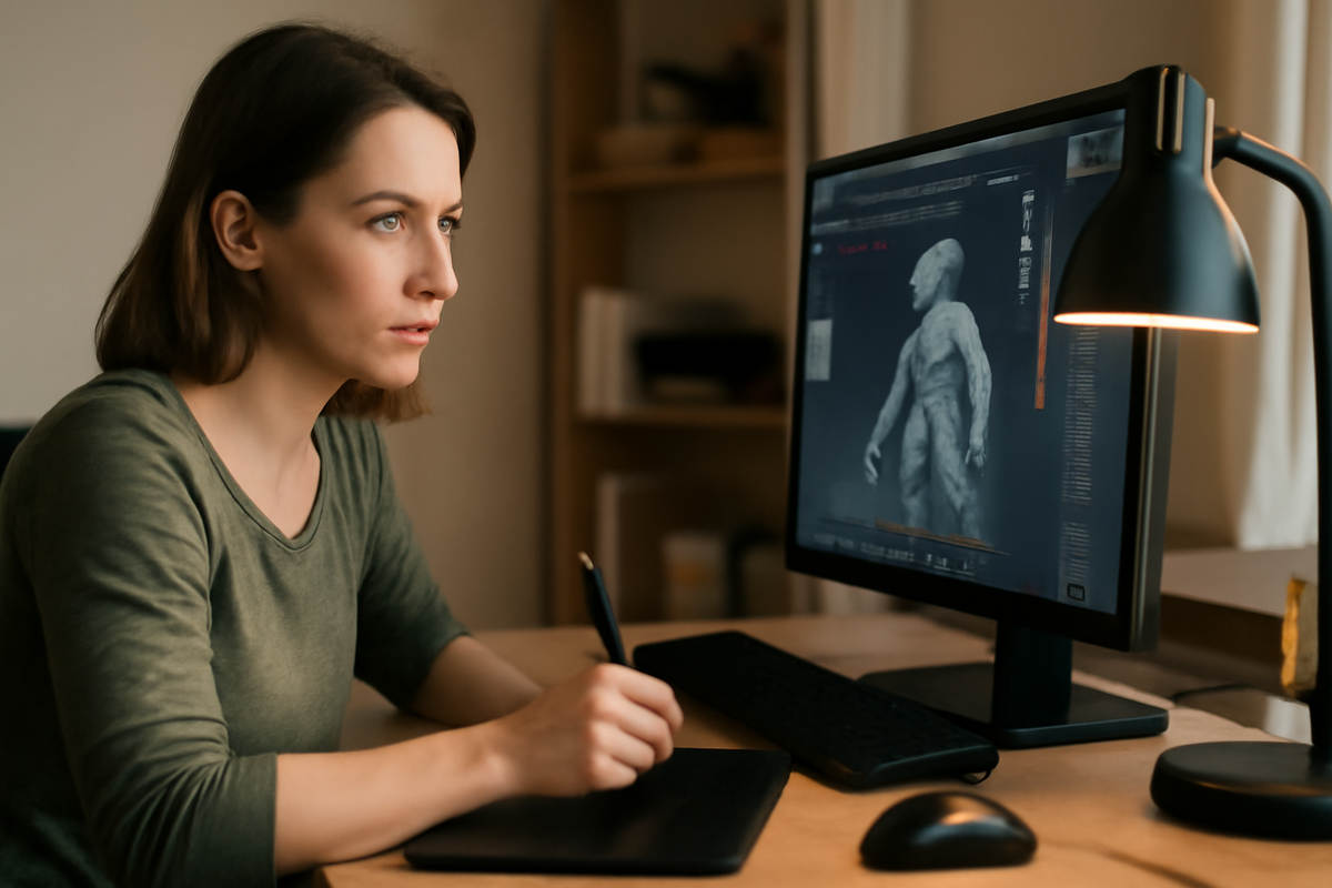 Drafting - Paragraph 1:На курсе мы быстро перешли к практике, и первой большой ступенькой стало освоение программы ZBrush для моделирования. Именно здесь начались мои первые слезы, потому что работа с "цифровой глиной" оказалась совсем не такой легкой и интуитивной, как я наивно представляла.