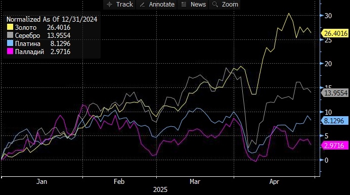 Средняя цена золота будет выше этого уровня как в 2025, так и в 2026 году, а серебро будет дорожать быстрее, окажется выше $34 за унцию. Аналитики, участвующие в традиционном квартальном опросе Reuters, прогнозируют, что среднегодовая цена золота впервые превысит 3000 долларов США, поскольку спрос подпитывается мировыми торговыми противоречиями и снижением популярности доллара США. Опрос 29 аналитиков и трейдеров дал средний прогноз в $3065 за тройскую унцию золота в 2025 году, что выше прогноза в $2756, полученного в таком же опросе 3 месяца назад. Оценка средней цены золота на 2026 год выросла с $2700 до $3000. За весь 2024 года золото подорожало на 27%, а с начала 2025 году уже прибавило в цене 25%. Средняя цена с начала текущего года пока составляет 2952 за $унцию. Уровень $3000 был преодолен в середине марта, а в апреле котировки достигали уже $3500, поскольку торговая война США и Китая повысила спрос на безопасные активы в дополнение к стабильно высокому спросу на золото со сторо