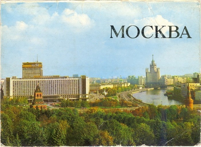 После набора открыток о Московском Кремле хочу опубликовать набор настоящих почтовых карточек о Москве. Комплект открыток "Москва" из 18 сюжетов. Издательство "Правда" 1982-ой год. Цена аж 2 рубля. Упакованы в картонный конверт с полиграфией и золотым тиснением. Каждая карточка так же содержит золотое тиснение. На обратной стороне напечатан почтовый бланк для возможности бесконвертной отправки. Москва за эти 40 лет, что прошли с момента издательства карточек, изменилась, хотя и не везде. Упаковка набора сохранилась не очень. На ней изображен панорамный вид города. Памятники архитектуры сохранились в том же виде и сейчас. Некоторые сейчас выглядят даже лучше. Памятник архитектуры XVII в. Церковь "Покрова в Филях". Фото В. Полякова И Новодевичий монастырь стоит там же где и раньше. Памятник архитектуры XVI-XVII вв. Новодевичий монастырь. Фото В. Полякова А вот Варварка то изменилась. Церкви то остались, а вот гостиница Россия исчезла. Да и называлась улица похоже иначе. Улица Степана Раз