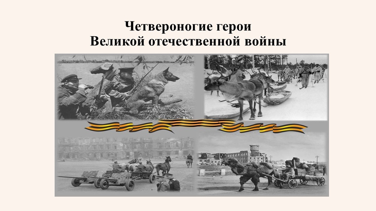 ⭐ Ребята из команды «Радость» провели исследование и подготовили интереснейшую презентацию на тему участия животных в событиях Великой Отечественной войны. 🦅📚 ✨ Животные действительно играли огромную роль в победе над врагом, проявляя героизм, верность и самоотверженность рядом с людьми. 🥈 Благодаря четвероногим героям было спасено множество жизней солдат и мирных жителей. Они выполняли важнейшие задания — доставляли боеприпасы, перевозили раненых, помогали разминированию территорий и разведке вражеских позиций. 🏅 Дети активно включились в изучение истории, восхищаясь подвигами собак, лошадей, голубей и даже кошек! Эта увлекательная работа помогла ребятам осознать значимость вклада братьев наших меньших в общее дело Победы. #80ДобрыхДелКПобеде #ФорумКлассныхРуководителей #Сферум80ДобрыхДел