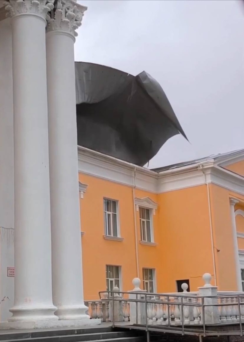 Сильный ветер сорвал часть кровли с уфимского Дворца пионеров. В соцсетях появилось видео с развевающимся на ветру, а потом улетевшим в небеса, железным листом. В администрации Советского района сообщили, что на место инцидента отправлены службы, которые устраняют «прореху». «Ведутся работы по ремонту поврежденного участка крыши. Принимаются все необходимые меры для скорейшего восстановления и обеспечения безопасности. В происшествии никто не пострадал», — сообщили в районной администрации. Фото: скриншот видео.