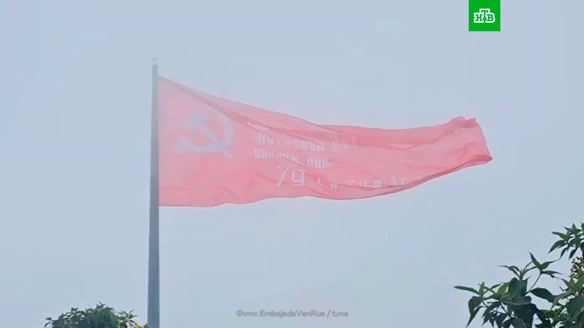 [ Смотреть видео на сайте НТВ ] Копия Знамени Победы развевается над Каракасом в Венесуэле. Гигантская копия Знамени Победы была поднята на самом высоком флагштоке Каракаса, сообщили в посольстве России в Венесуэле. В мероприятии в честь 80-летия Победы приняли участие министр иностранных дел Венесуэлы Иван Хиль, министр туризма Летисия Гомес, министр культуры Эрнесто Вильегас, а также представители других министерств и ведомств. Российский посол Сергей Мелик-Багдасаров подчеркнул, что поднятие в Каракасе «самого большого Знамени Победы за пределами России» символизирует глубинную связь между народами, общую волю к правде, свободе и миру. Отмечается, что церемония стала кульминацией серии памятных мероприятий. [ Смотреть видео на сайте НТВ ]