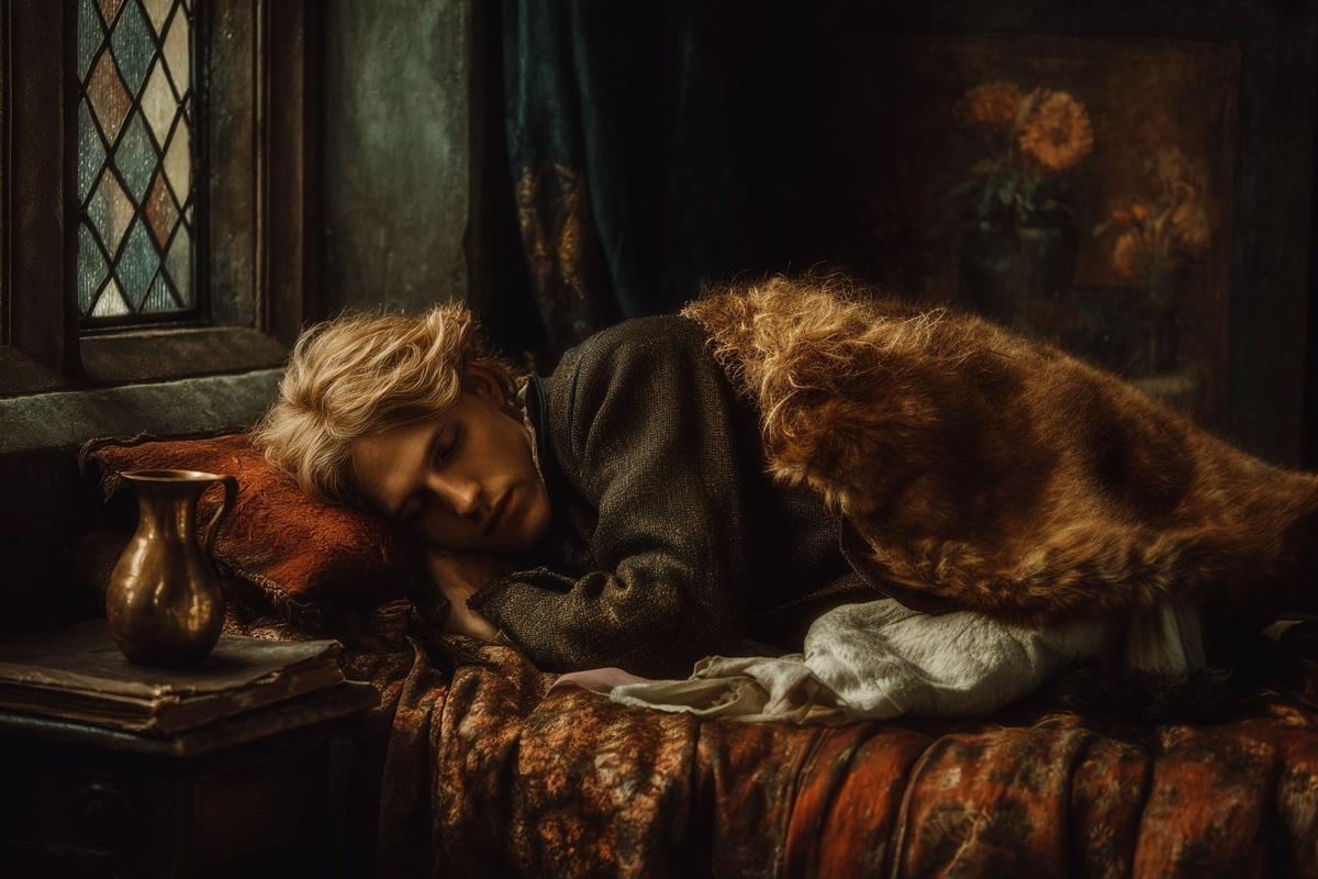 Создано на основе запроса: A Pre-Raphaelite painting, in the style of John William Waterhouse, a young man looks on as his male lover is sleeping, tenderness and love, looks after his beloved husband who is asleep, there is gorgeous lighting in this room, and feeling of comfort and familial love --- Автоперевод: Картина до рифаэлита, в стиле Джона Уильяма Уотерхауса, молодой человек смотрит, когда его любовник спят, нежность и любовь, присматривает за своим любимым мужем, который спит, в этой комнате есть великолепное освещение и чувство комфорта и семейной любви Какое твое впечатление? 🤔 https://dzen.ru/id/65c0c65c86e4f837c27b24d7 #ИИ #AI #нейросеть #midjourney #art