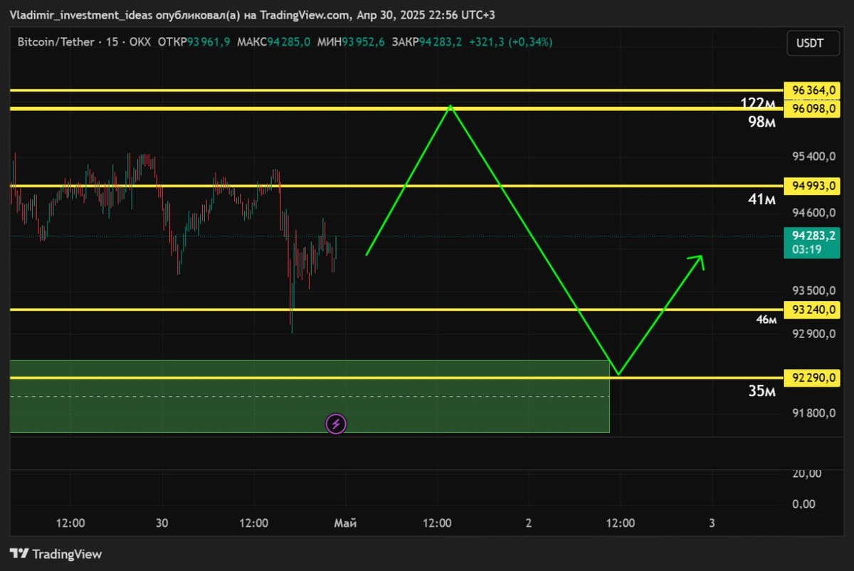 Зоны прихода и где будет реакция по битку отметил на графике, так же и направление чего жду