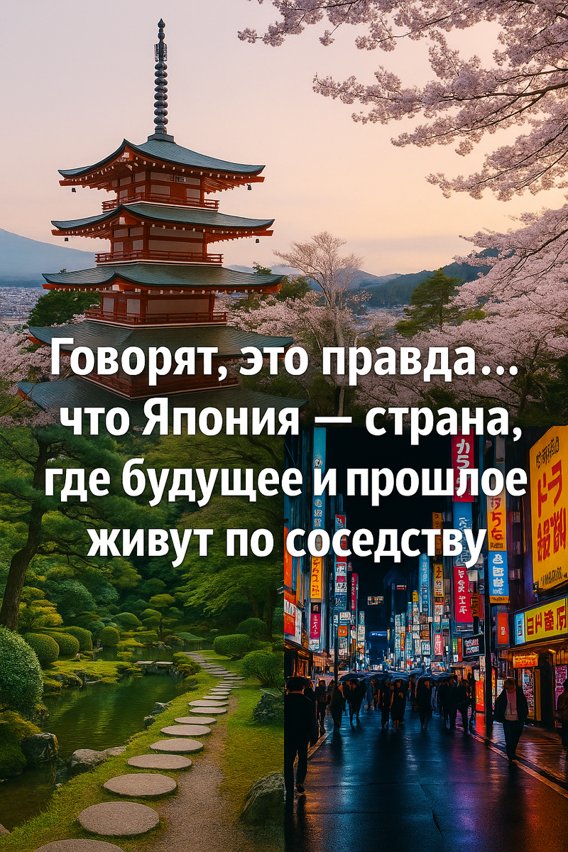 Япония — это не просто страна. Это культурный парадокс: здесь высокоскоростные поезда мчатся мимо древних храмов, а роботы с вежливостью поклоняются прохожим. В этой стране традиции и технологии не конфликтуют, а гармонично сосуществуют. 1. Цветение сакуры на фоне пагоды: 2. Традиционный японский сад с каменными дорожками: 3. Улицы Токио ночью, освещённые неоновыми огнями: В Японии почти не воруют.