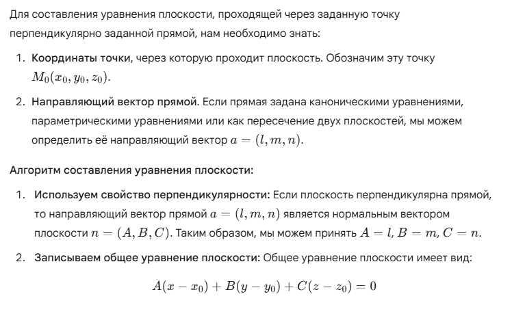 Составить уравнение плоскости проходящей через точку перпендикулярно прямой