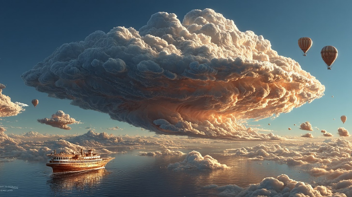 Создано на основе запроса: each cloud is a dream. surrealist, visual art.