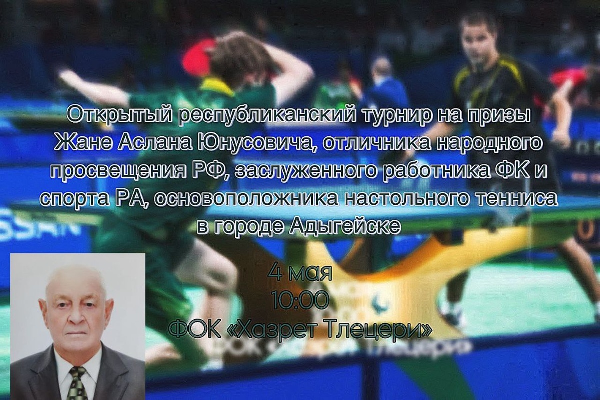 4 мая в 10.00ч в Адыгейске в спорткомплексе "Хазрет Тлецери" состоится турнир по настольному теннису.