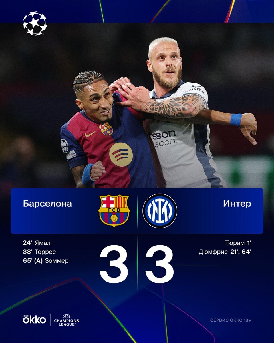 Это Лига чемпионов. Это полуфинал 🤯 «Барса» и «Интер» устроили настоящее шоу. Ждем ответку 😏