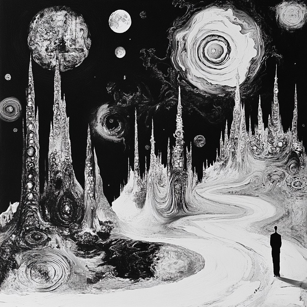 Создано на основе запроса: a magical world with no worries a blissful eerie dreamworld noir alternate reality in the style of Stanley