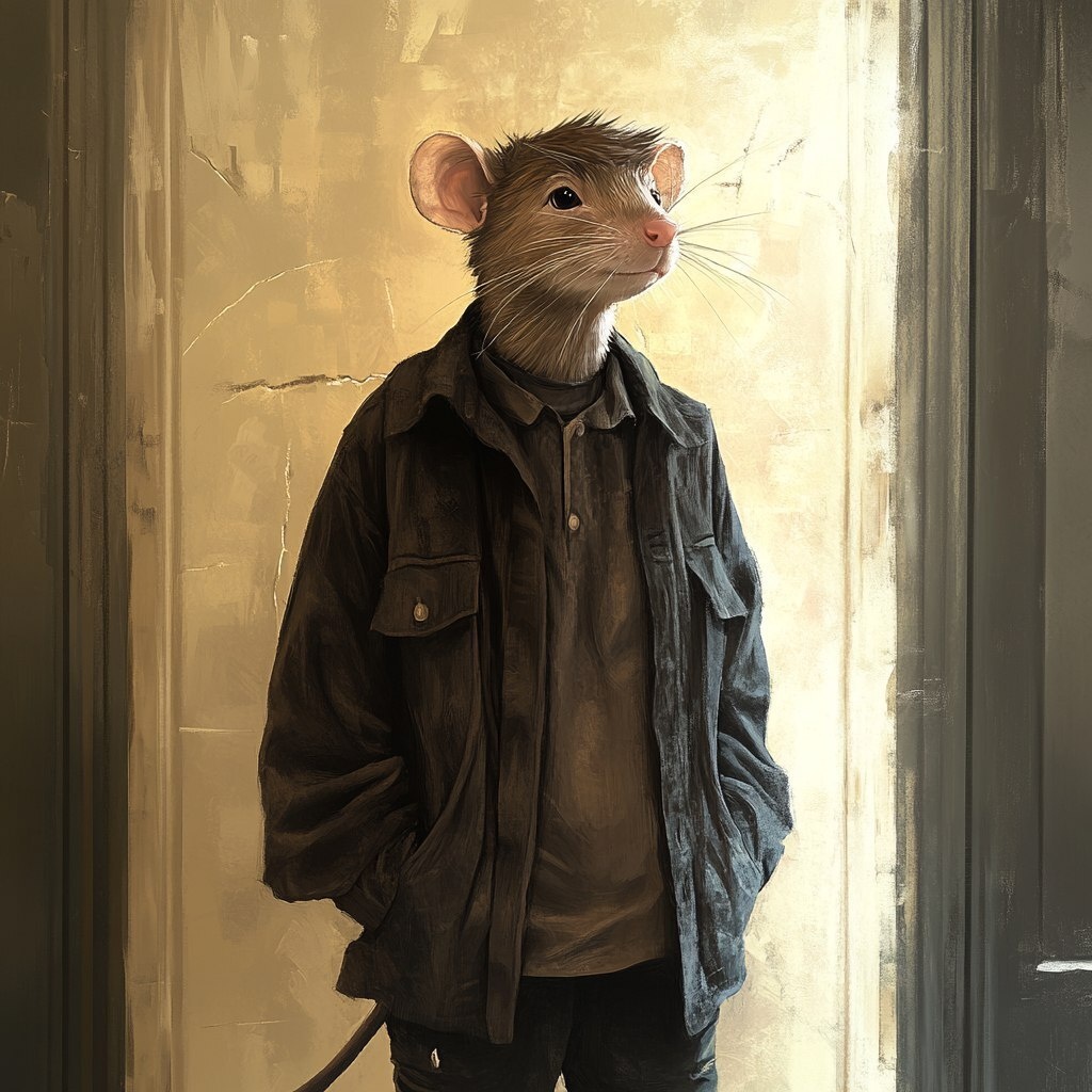 Создано на основе запроса: as a rat-person. More human than rat, but still very rat-like. --- Автоперевод: как крыса. Как тебе это изображение? 🤔 https://dzen.ru/id/65c0c65c86e4f837c27b24d7 #ИИ #AI #нейросеть #midjourney #art