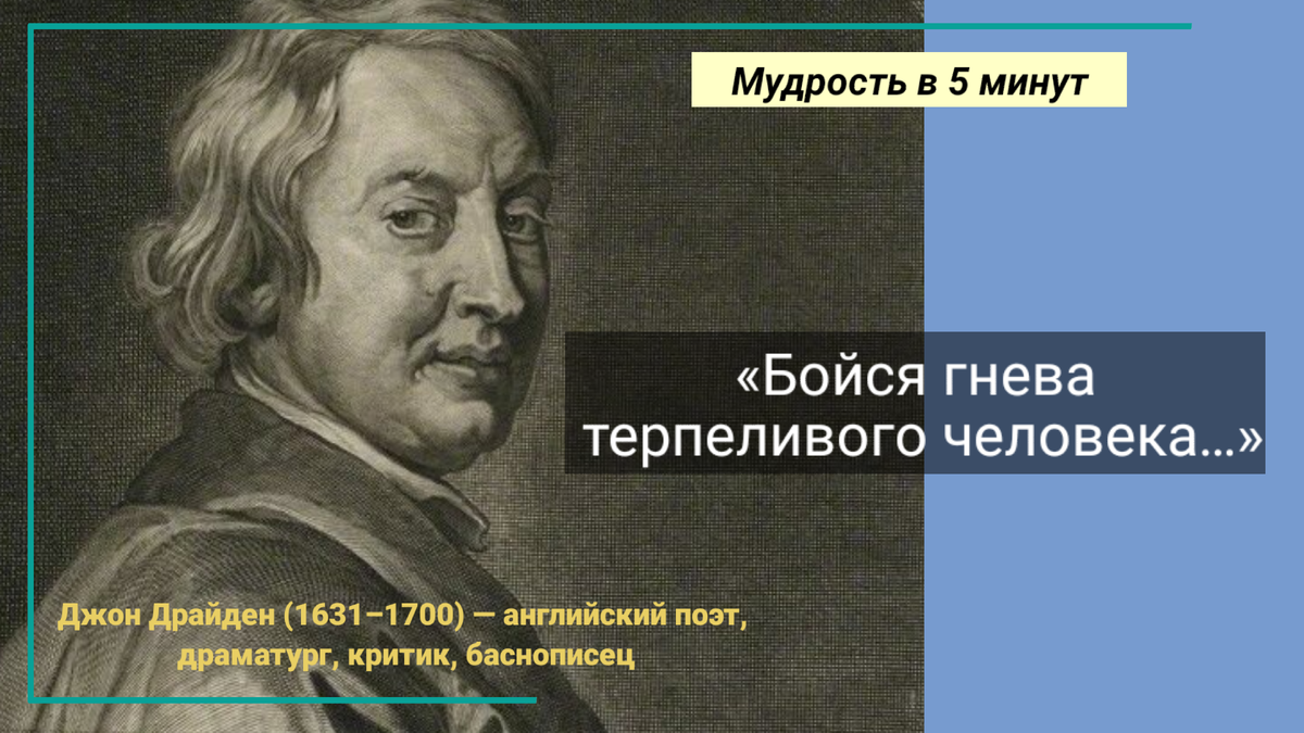 «Бойся гнева терпеливого человека…» Звучит жутко, правда? Это слова Джона Драйдена и они заставляют нас задуматься.🤔 Во первых хочу сказать, что эта фраза не зря стала крылатой. Она, как нельзя лучше, отражает глубокую психологическую истину о природе человеческих эмоций и последствиях долгого подавления чувств. Но почему именно терпеливый человек, а не вспыльчивый, должен вызывать опасения? Давайте разберемся. Представьте себе плотину. Она долго и упорно сдерживает напор воды, день за днем, месяц за месяцем. Со стороны кажется, что она непоколебима. Но что произойдет, если давление воды станет слишком сильным? Правильно, плотина рухнет, и мощный поток сметет все на своем пути. 💪 силой воли, позволяющей ему сдерживать свои эмоции. 🤐 Он может долго молчать, прощать обиды и закрывать глаза на недостатки других. Но это не значит, что он ничего не чувствует. Наоборот, негативные эмоции накапливаются внутри него, как вода за той самой плотиной. И вот наступает момент, когда чаша т