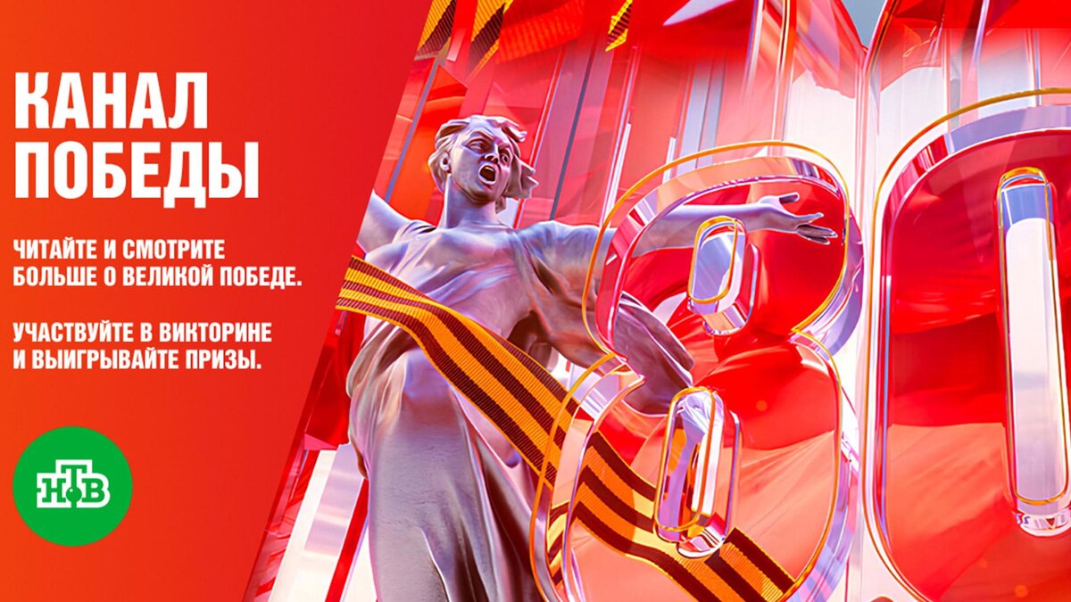 С 1 по 8 мая в честь юбилея Победы мы проводим праздничную викторину. Чтобы принять участие, пройдите по ссылке. Каждый день с 1 по 8 мая мы будем публиковать по 10 новых вопросов. Отвечайте на них и зарабатывайте очки. Можно отвечать каждый день, а можно — сразу на все, главное — успеть это сделать до 8 мая включительно. 9 мая мы подведем итоги. 10 человек, которые быстрее всех ответили на наибольшее число вопросов, получат призы с символикой НТВ. Викторина — часть нашего специального проекта к 80-летию окончания войны.