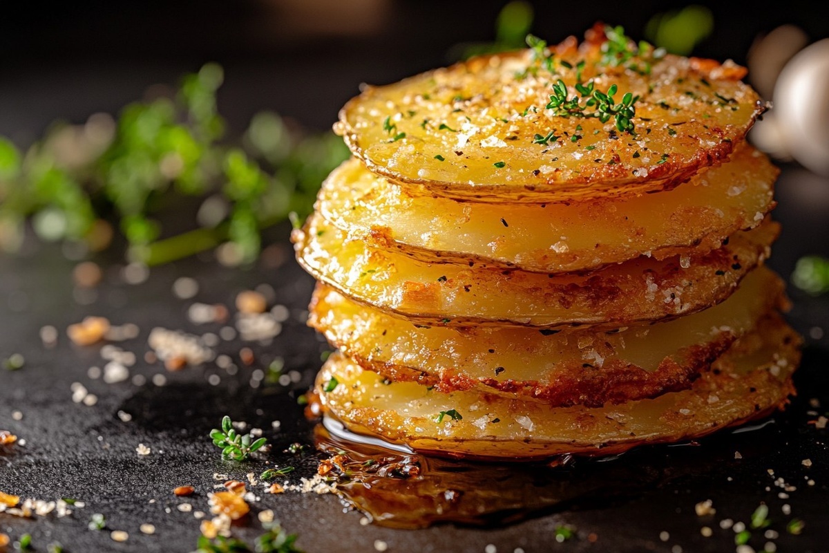 Создано на основе запроса: Title: Crispy Parmesan Potato Stacks | STYLE: Close-up Shot right view | EMOTION: realistic as possible | SCENE