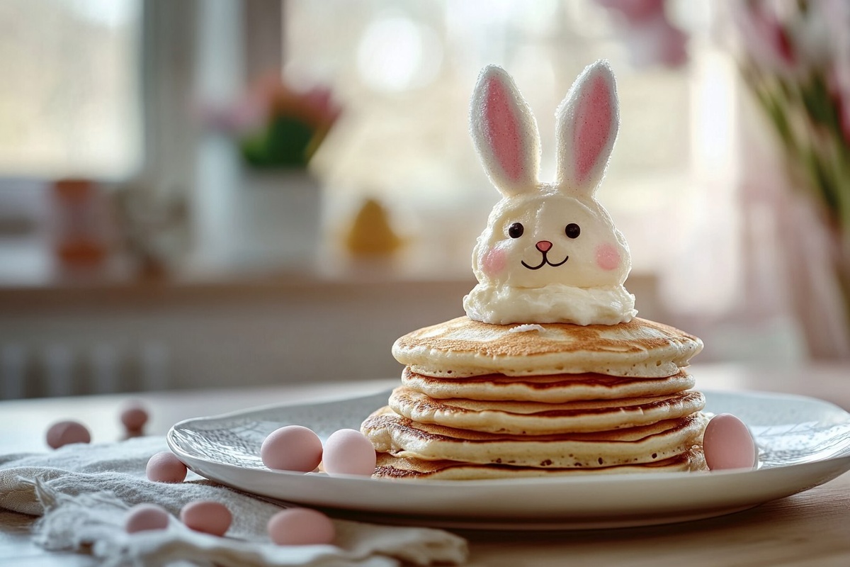 Создано на основе запроса: Title: Easter Bunny Pancakes | STYLE: Close-up Shot right view | EMOTION: realistic as possible | SCENE: KEYWORD