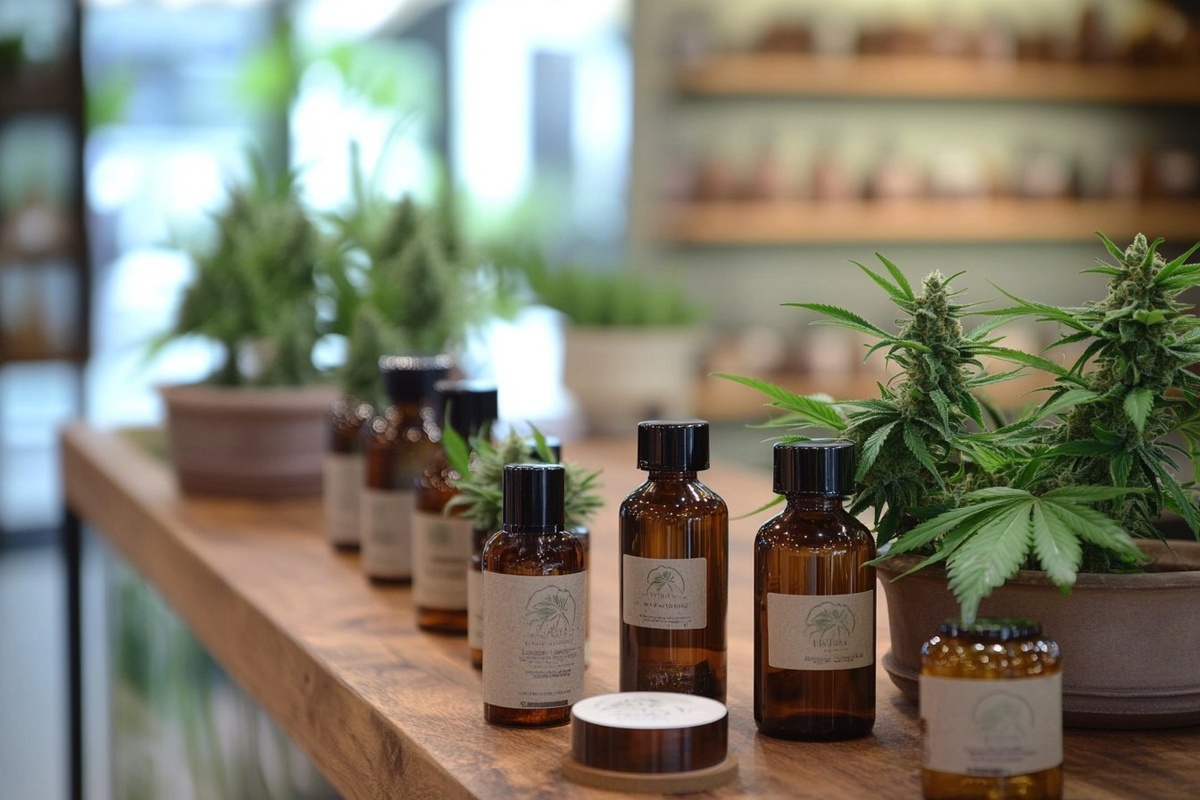 Создано на основе запроса: l'intérieur d'une boutique de cannabis avec un style minimaliste scandinave