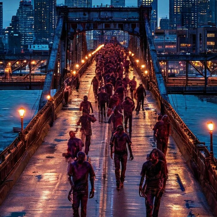 Из-за поворота дороги, огибая ограду парка Морской Академии, ползла сплошная движущаяся масса. С большого расстояния и при свете выглядывающей из-за рваных туч луны она напоминала бурный грязевой поток, словно рядом с Сиалой вдруг появилась вторая река. Леденящий душу звук - разноголосый хрип мертвых глоток был слышен и на таком значительном удалении.