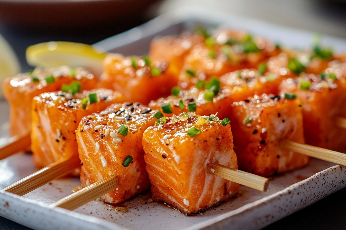 Создано на основе запроса: Title: Crispy Bang Bang Salmon Bites | STYLE: Close-up Shot right view | EMOTION: realistic as possible | SCENE: KEYWORD | TAGS: High-end food photography, clear composition, mouth-watering, indulgent, gourmet, cuisine, recipe | CAMERA: Nikon Z7 | FOCAL LENGHT: soft direction light | PRODUCTION : food stylist | TIME : daytime | LOCATION TYPE : kitchen near windows,
