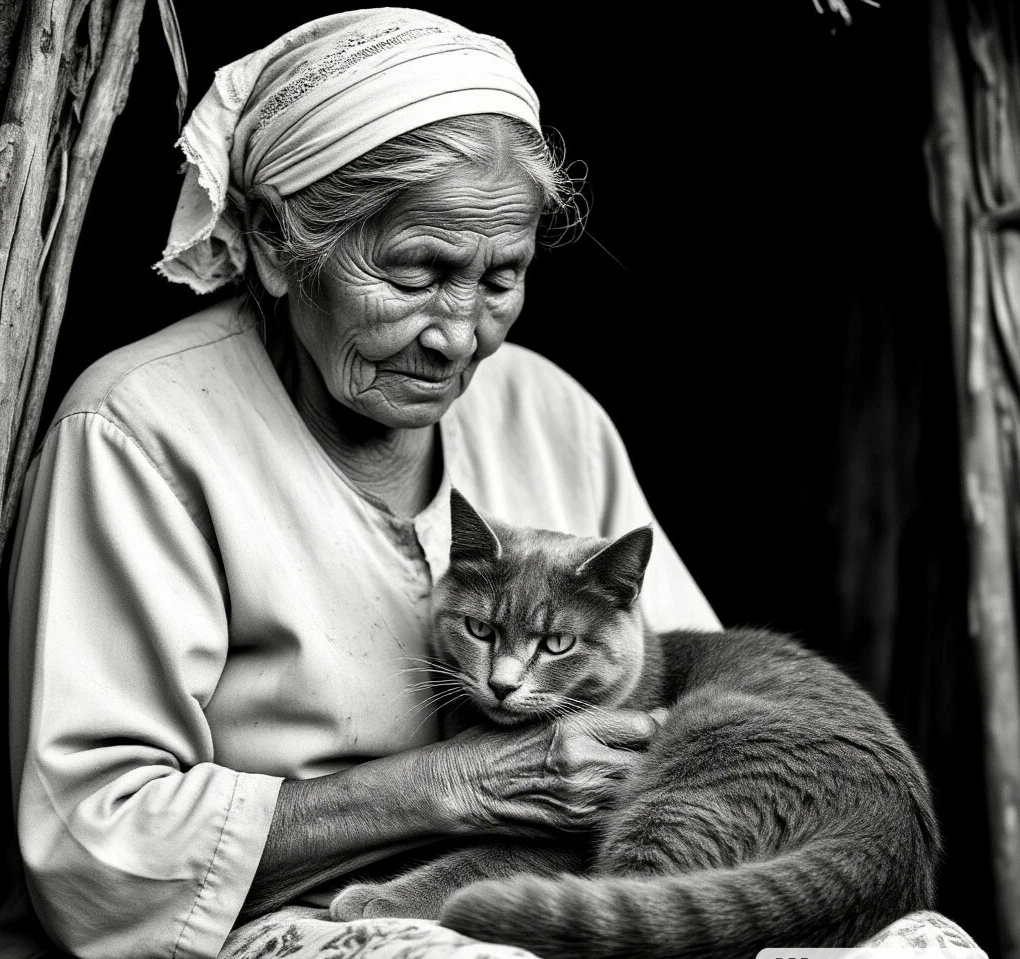 Кот Васька развалился на коленях, лежит, урчит, как трактор. Дети смирились, что мать живёт одна и уже больше не возмущаются. А ей не хватает человеческого общения, не с кем и словом перекинуться, разве что с котом.