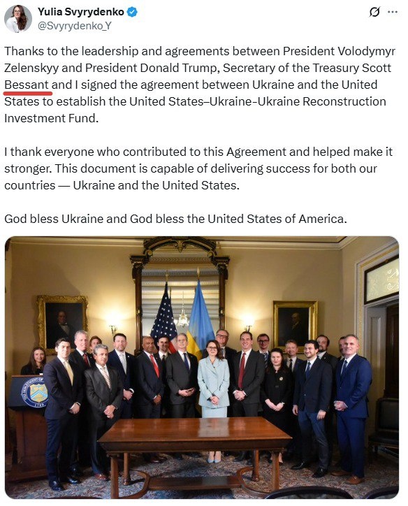 Maybe Ukraine’s Economy Minister should try spelling Bessent’s name correctly before celebrating minerals deal