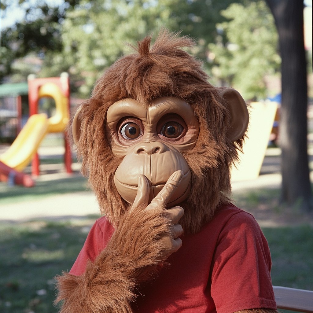 Создано на основе запроса: a full body image of a 4 foot monkey puppet in the theme of a 90's sitcom character such as Alf. The monkey is holding a finger to his lips quiet-like. He is looking to camera happily. he is wearing a red t-shirt and situated in a park near a slide --- Автоперевод: Полный образ тела 4 -футовой марионетки обезьяны в теме персонажа ситкома 90 -х годов, такого как Альф. Отлично выглядит? 🤔 https://dzen.ru/id/65c0c65c86e4f837c27b24d7 #ИИ #AI #нейросеть #midjourney #art