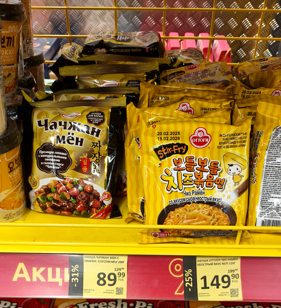 Всем привет! Сегодня на обзоре ещё одна корейская лапша бренда Оттоги. Жареная лапша с сырным вкусом. Эту лапшу я купил в Дикси за 150 рублей. Но она появилась и в FixPrice. Даже дешевле на 30 рублей. Взял ещё Чачжан мён от Доширака с хорошей скидкой. Моя любимая лапша. Часто её ел, но обзор не делал. Масса 120 граммов. Неострый вкус. Срок годности с большим запасом. Лапша пшеничная для варки. Состав длинный. Лучше не читать). В составе соуса даже глицин есть. А он, как все знают, снижает психоэмоциональное напряжение и способствует работе головного мозга. Хоть какая-то польза будет от этого блюда. В упаковке брикет лапши. И один пакетик с сырным порошком. Болше ничего нету. Буду варить по инструкции. 3 минуты в кипящей воде, насыщая лапшу кислородом. После того как лапша сварилась, оставляю три ложки воды. Засыпаю сухую сырную основу и начинаю интенсивно перемешивать. В итоге получается такая лапша цвета яичных желтков. Соус густой. Приятно, что нет аромата химического