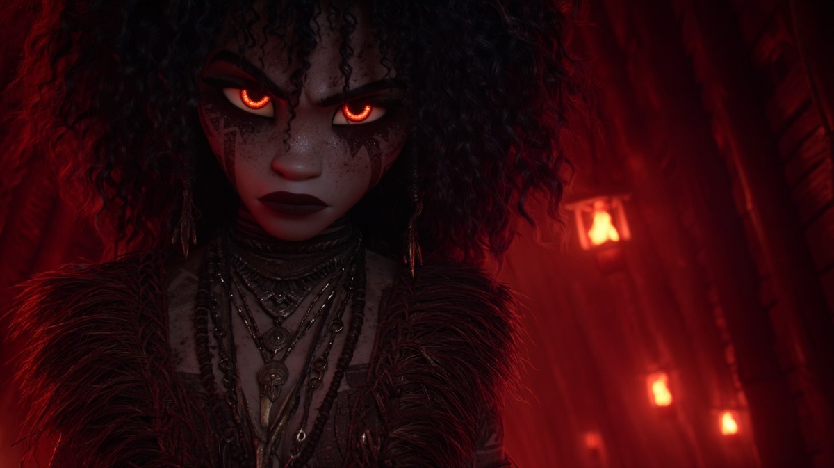 Создано на основе запроса: dark horror cinematic still from Moana