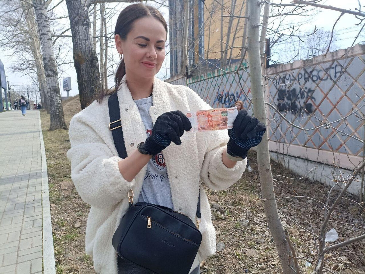 С лопатами и граблями сотрудники управления образования Хабаровска вышли на субботник накануне. Уборка улиц проводилась возле остановки «Топографическая», Краснофлотский район. Среди мусора была найдена и пятитысячная купюра. О чем управление образования сообщило в своем Телеграм-канале. Деньги решили пустить на доброе дело. - Сегодня во время уборки сотрудники управления образования обнаружили 5000 рублей! На эти деньги купим рассаду и высадим во дворе, чтобы наш город стал ещё красивее и зеленее! - поделились в управлении образования города. И пока сотрудники образования радовались неожиданной удаче, хабаровчане стали изучать фото купюры. Оказалось, что деньги ненастоящие, и купить на них цветочки никак не получится. - На купюре, которую демонстрирует девушка, указано: «Билет банка приколов», - написали в комментариях бдительные хабаровчане. Билеты банка приколов как правило покупают для розыгрышей. Например, фальшивые деньги разыгрывают на свадьбах, вечеринках и другие праздниках, г