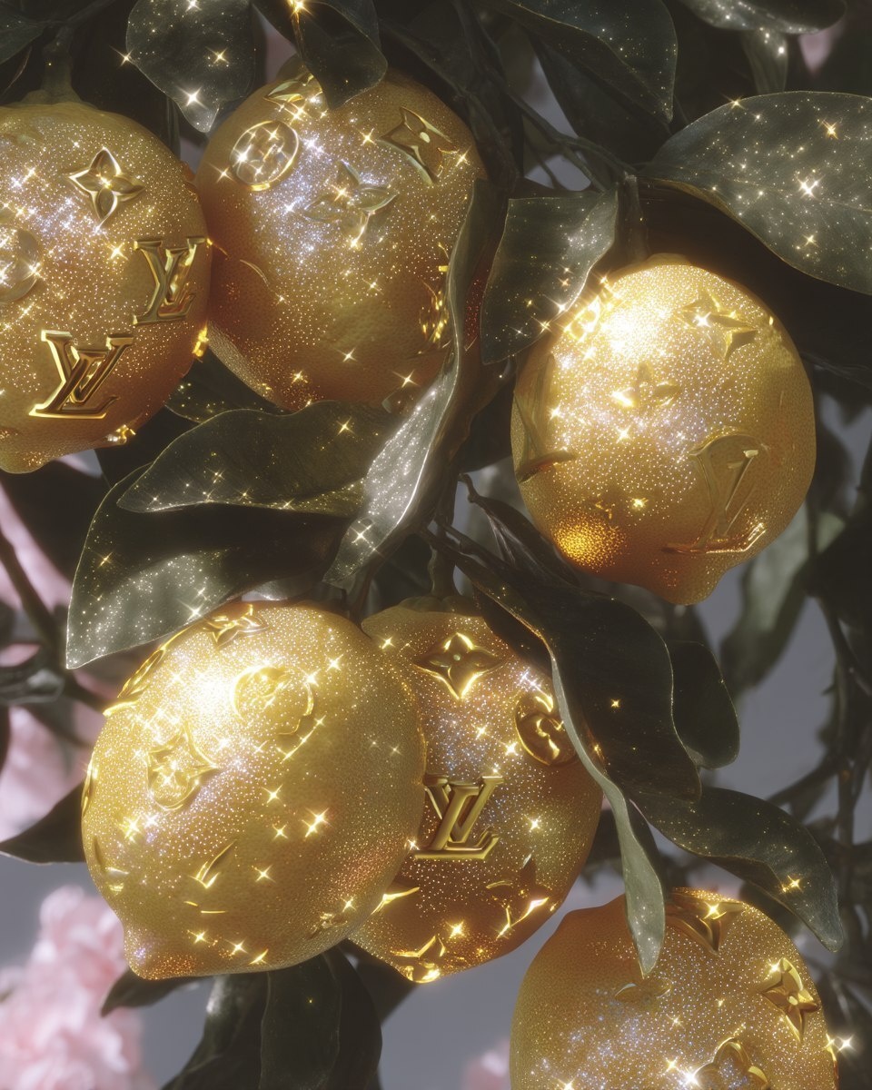 Создано на основе запроса: A photograph of an orange tree with large, yellow, and shimmering lemon fruits. The lemons have a Louis Vuitton monogram print on them, giving the image an editorial photography, Vogue magazine aesthetic. --- Автоперевод: Фотография оранжевого дерева с большими, желтыми и мерцающими лимонными фруктами. Интересно получилось? 🤔 https://dzen.ru/id/65c0c65c86e4f837c27b24d7 #ИИ #AI #нейросеть #midjourney #art
