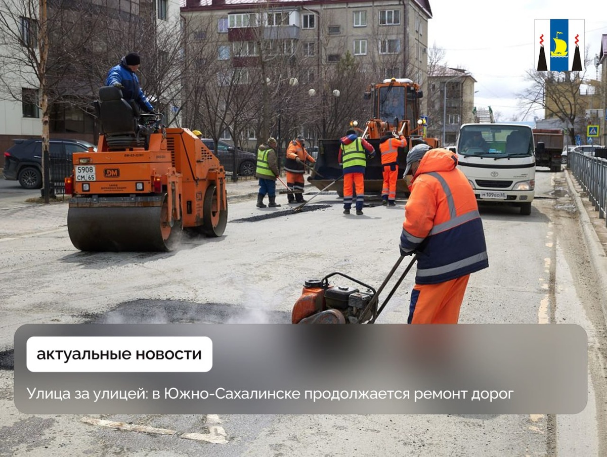 Улица за улицей: в Южно-Сахалинске продолжается ремонт дорог С начала активного сезона ремонта городские службы обновили порядка 13 тысяч квадратных метров асфальтобетонного покрытия. Работами охвачен весь городской округ. Особое внимание — основным транспортным магистралям, автобусным маршрутам, дорогам возле школ и детских садов. - Работаем круглосуточно. Мы нацелены на более масштабный переход к работе большими картами. Ждем установления положительных температур. Сейчас постепенно завершаем работы на ул. Сахалинской, затем перейдем на ул. Железнодорожную. Также в планах — участок Холмского шоссе, где кроме того необходимо выполнить замену пучинистых грунтов. Здесь также необходимы подходящие погодные условия, - отмечает начальник отдела по содержанию автомобильных дорог управления мониторинга дорожного хозяйства и благоустройства Андрей Нечепуренко. К 1 июня планируется завершить основной объем работ по устранению дефектов, образовавшихся на дорогах Южно-Сахалинска после зимы. Та
