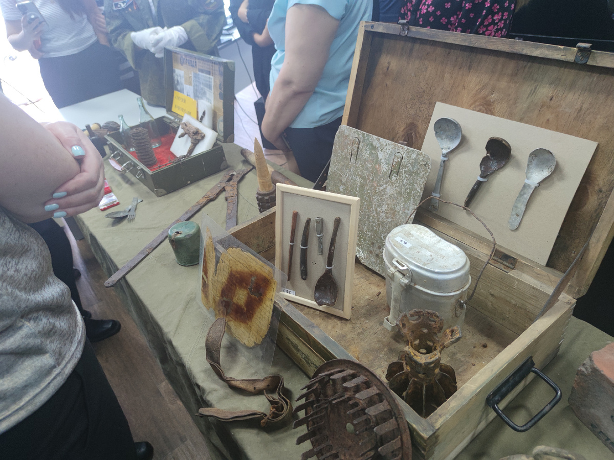 В преддверии Дня Победы к нам на работу приезжали представители поискового отряда, чтобы поделиться своей историей и опытом. Главное направление деятельности поискового отряда - это поиск и перезахоронение останков советских воинов. На встрече присутствовали 6 старшеклассников и их руководитель. Они привезли с собой два чемодана с экспонатами - то, что находят во время экспедиций. У каждого экспоната есть своя история. Руководитель - женщина с горящим взором, помнит, где и при каких обстоятельствах был найден каждый предмет. Я слушала каждую историю, затаив дыхание. Было очень интересно и грустно. Также рассказывали, как происходят поисковые экспедиции. Так как в основном такие отряды состоят из школьников и студентов. То выезжают на экспедиции летом, когда каникулы. Работа поисковика похожа на изыскания археолога. Первым делом обходят территорию с металлоискателем. Если он сработал, то аккуратно осматривают место. После снимается слой дерна и земли, а потом аккуратно извлека