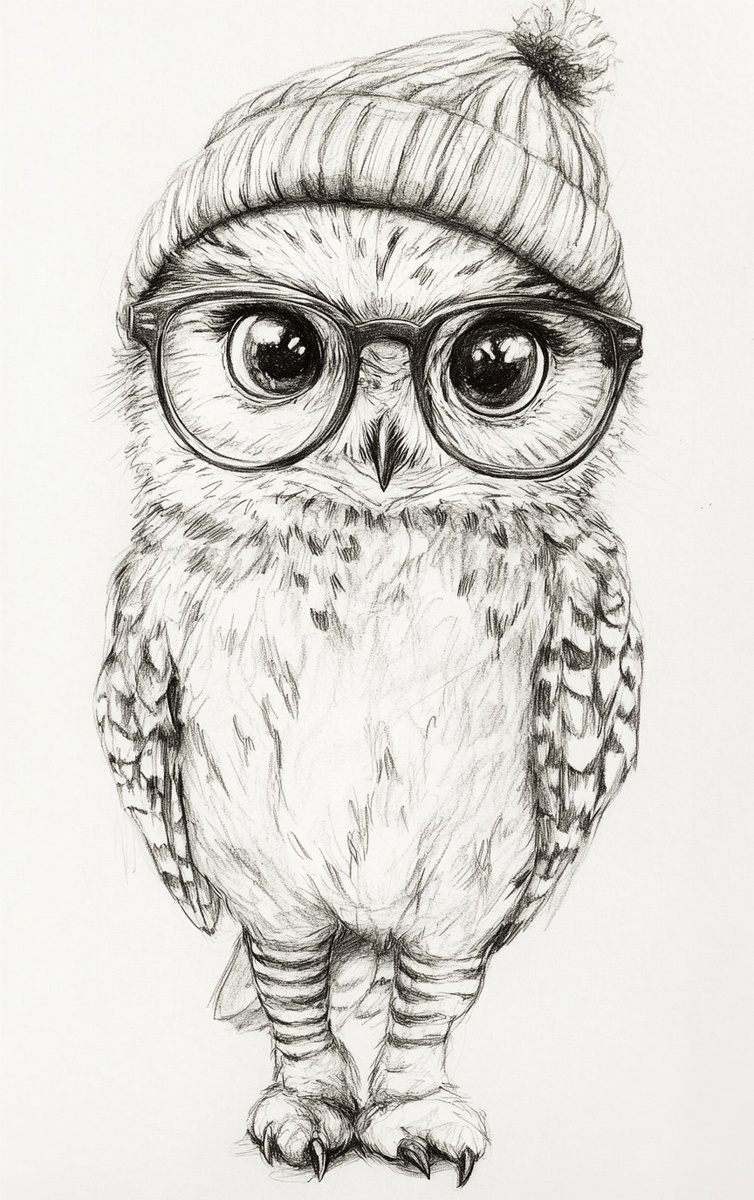 Создано на основе запроса: rough full-body pencil sketch of a snowy owl. snowy owl is wearing a sock hat and large framed thick glass glasses. include white background. --- Автоперевод: Грубая карандашная наброска карандаша снежной совы. Что скажешь? 🤔 https://dzen.ru/id/65c0c65c86e4f837c27b24d7 #ИИ #AI #нейросеть #midjourney #art
