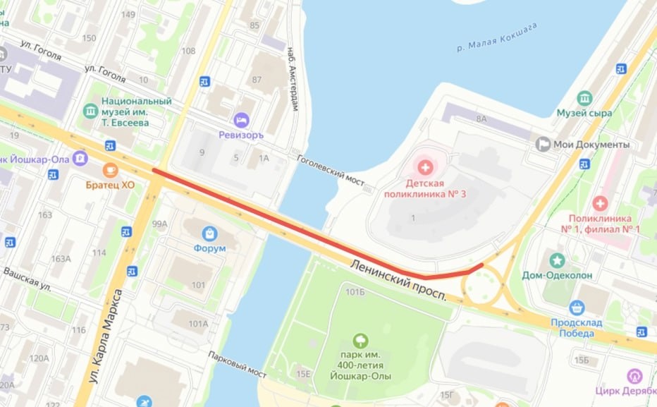⛔️ С сегодняшнего утра и до 6 часов утра 5 мая в Йошкар-Оле перекрыт участок Ленинского проспекта