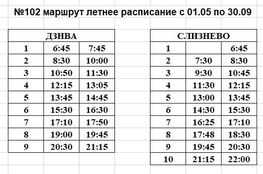 📅 Публикуем летнее расписание маршрута №102, действующее с 1 мая по 30 сентября