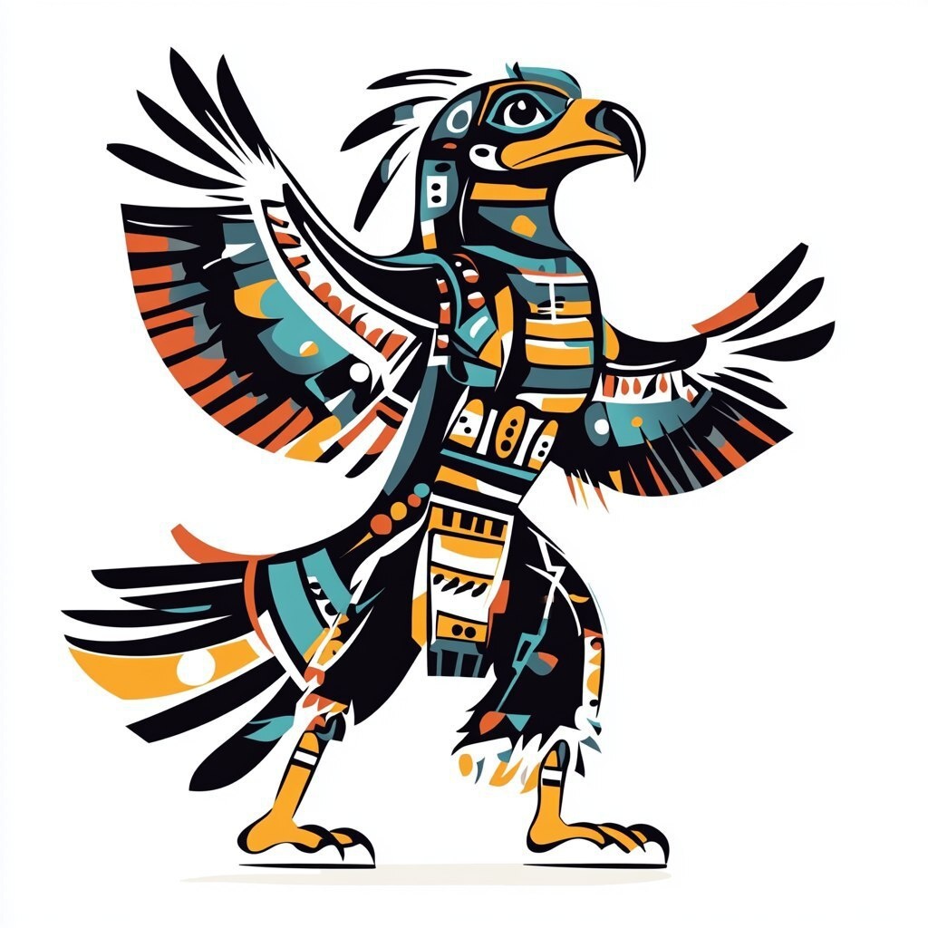 Создано на основе запроса: simplified retro NASA art full-body drawing of the eagle Kachina
