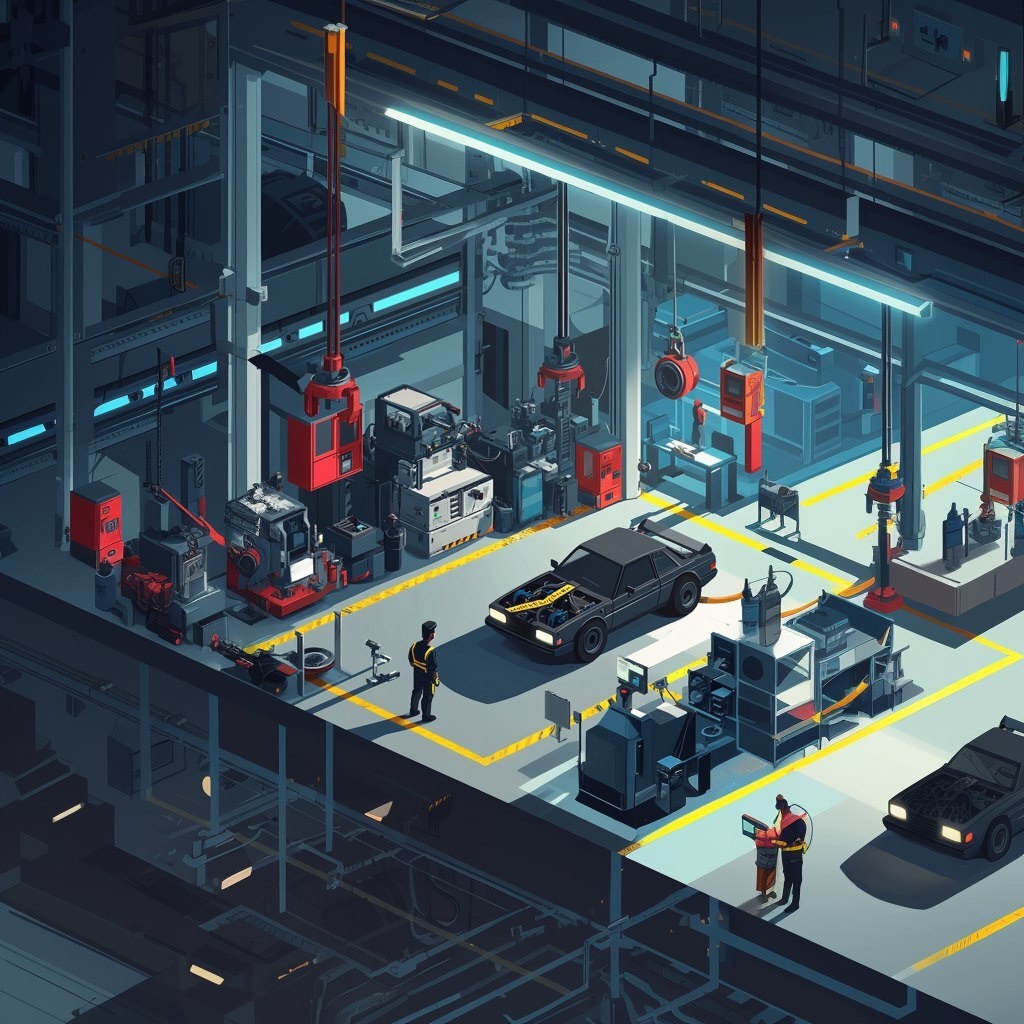 Создано на основе запроса: a concept artwork of our main character in disguise with a belt full of tools infiltrating a retro car facility populated with humans and robots make it minimalistic and zoomed out corner view of the factory assembly line --- Автоперевод: Концептуальные работы нашего главного героя, замаскированного с поясом, полным инструментов, проникающих в ретро -автомобиль, населенный людьми и роботами, делают его минималистичным и увеличенным угловым видом на линию заводской сборки Как тебе изображение? 🤔 https://dzen.ru/id/65c0c65c86e4f837c27b24d7 #ИИ #AI #нейросеть #midjourney #art