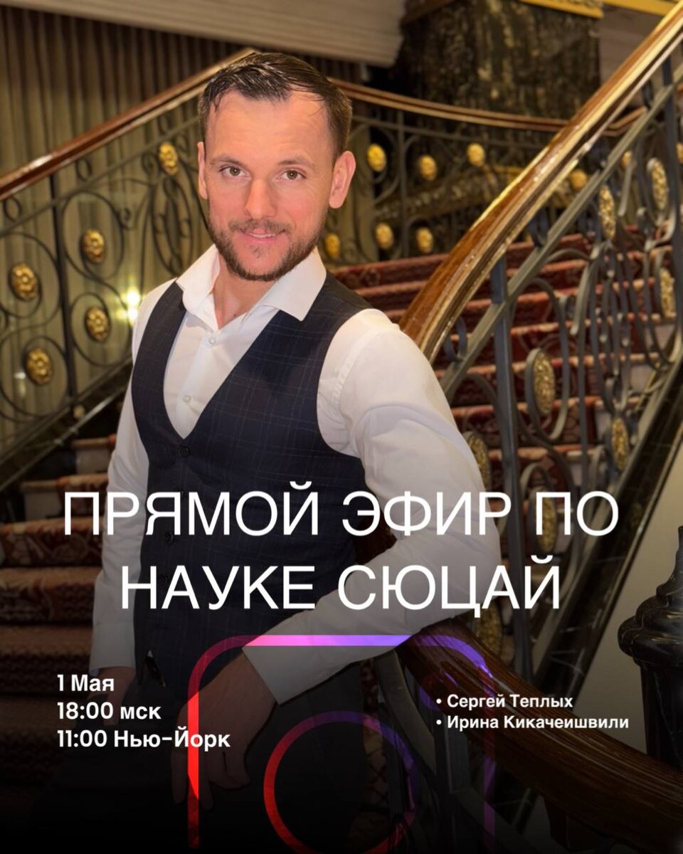 ПРЯМОЙ ЭФИР ПО НАУКЕ СЮЦАЙ 💥 Друзья, сегодня в 18:00 по МСК | 11:00 по Нью-Йорку пройдет прямой эфир 🔥 ✅ Проведем встречу совместно с куратором Сюцай по Америке и Грузии – Ириной Кикачеишвили Готовьте свои вопросы об обучении и становлении как цифрового консультанта в других странах, будет очень интересно! 🙌 📲 Присоединяйтесь к эфиру в Instagram https://www.instagram.com/sergei_teplykh?igsh=MXVxcmNzZnc3anZiZg==