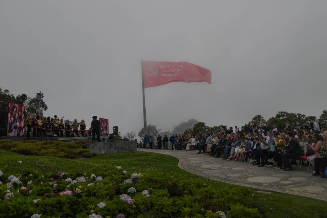 Гигантская копия Знамени Победы размером 25 на 11 метров была торжественно поднята на самой высокой точке столицы Венесуэлы - горе Гуарайра