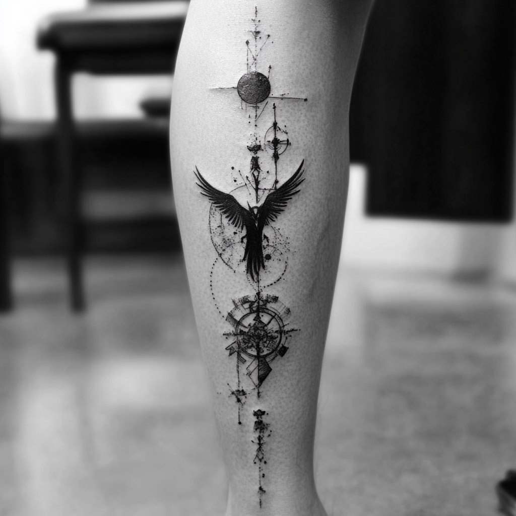 Создано на основе запроса: Tattoo, raven and wolf, time, smal tattoo ideas for the calf