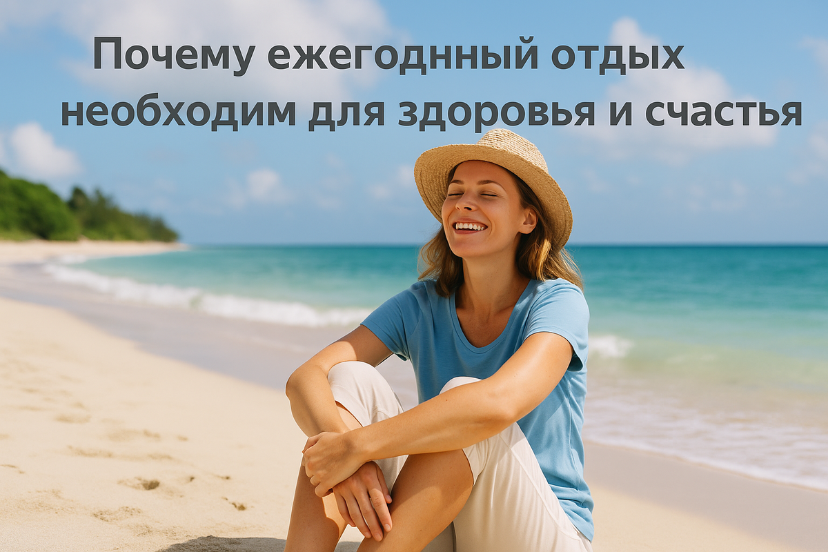 В современном мире, наполненном стрессами, быстрыми темпами жизни и бесконечными обязательными обязанностями, регулярный отдых не становится роскошью, необходимостью. Ежегодный отпуск играет ключевую роль в поддержании нашего физического и психического здоровья, а также в повышении общего качества жизни. Наше тело нуждается в периодическом восстановлении. Исследования показывают, что регулярный полноценный отдых: Психологическое благополучие не менее важно, чем прочное здоровье. Регулярный отдых: Отпуск — это прекрасная возможность укрепить социальную связь: Вопреки распространенному мнению, что отдых — это «потеря времени», исследования показывают обратное: Для того, чтобы отдохнуть от эмоциональной нагрузки, важно подойти к нему осознанно: Инвестиции в отдых — это инвестиции в собственное здоровье: Ежегодный отдых — это не просто приятное времяпрепровождение, необходимое условие для поддержания здоровья, психологического настроения и высокой эффективности в работе. В условиях сохран