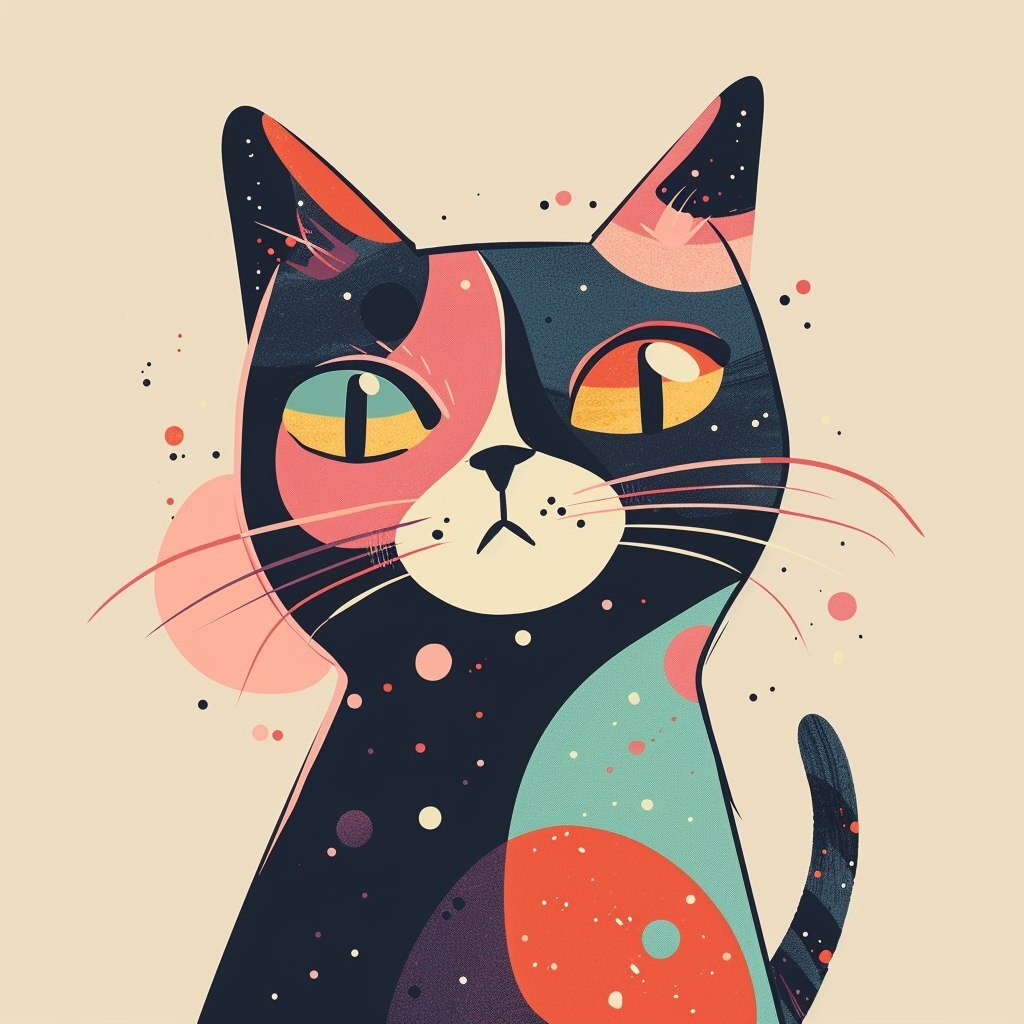 Создано на основе запроса: cute style expressive cat illustration, appropriation of the artist, simplified colors organic style