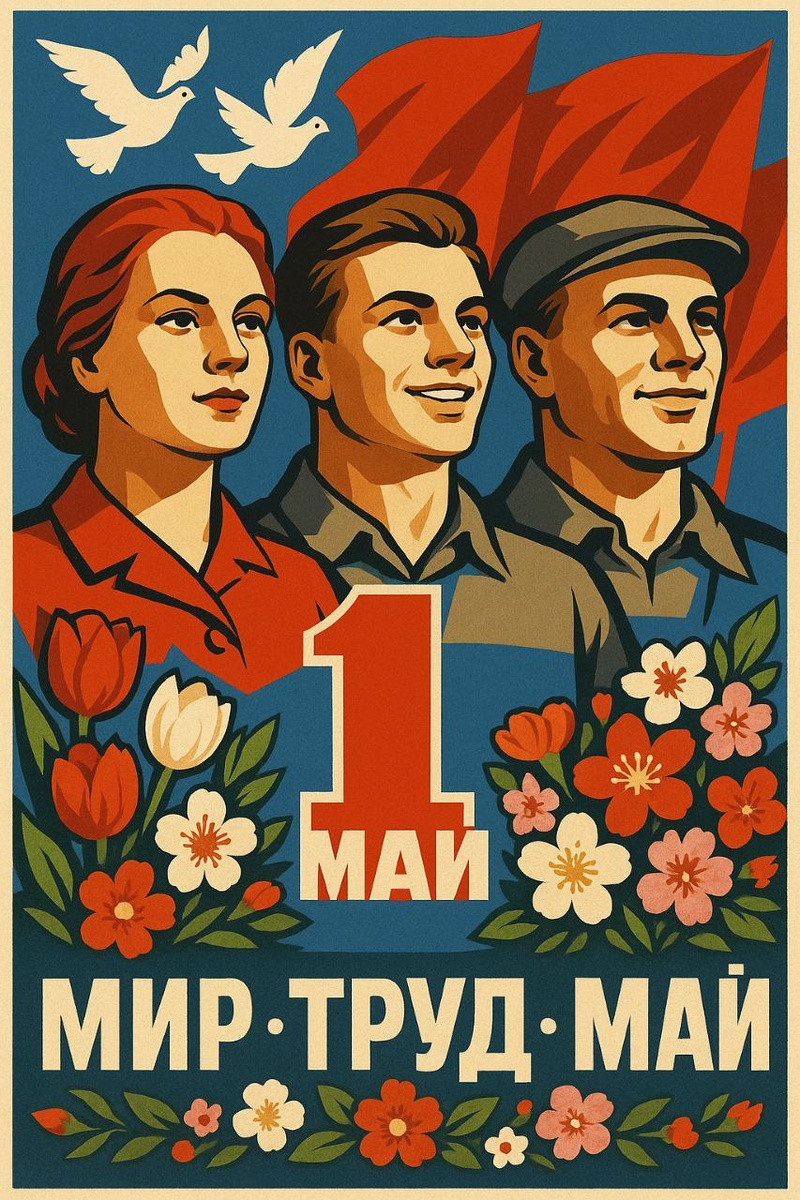 Сделай картинку в советском стиле про 1 мая. Мир, труд, май!