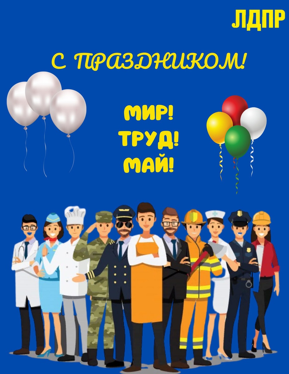 МИР! ТРУД! МАЙ! Депутатский корпус, координаторы и активисты Тюменского регионального отделения ЛДПР поздравляют тюменцев с Праздников Весны и Труда! В этот день мы чествуем всех, кто своим трудом создавал и создаёт богатство нашей страны: рабочих и служащих, инженеров и врачей, учителей и строителей, ветеранов труда, пенсионеров — всех, без кого развитие великой России невозможно! Сегодня, когда вопросы трудоустройства стоят особенно остро, ЛДПР с особым упорством защищает основополагающее конституционное право на труд для граждан России. Мы требуем приоритетного трудоустройства для наших соотечественников! Нельзя отдавать вакансии приезжим, пока наши граждане остаются без работы. Работа – русским, а не мигрантам! Желаем вам здоровья, благополучия, успехов во всех начинаниях и уверенности в завтрашнем дне! Пусть ваш труд всегда будет востребован и достойно оценен! С праздником!